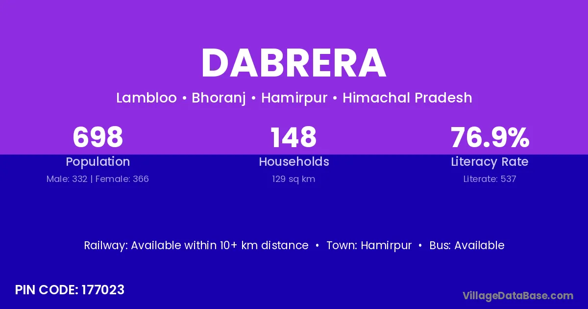 Hamirpur is the nearest town to Dabrera village for major economic activities