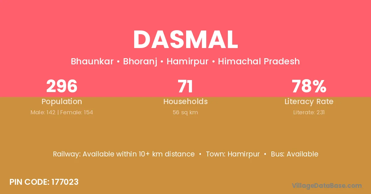 According to Census 2011 information, the village code of Dasmal village is 177023.