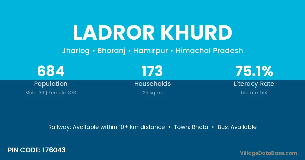 According to Census 2011 information, the village code of Ladror Khurd village is 176043.