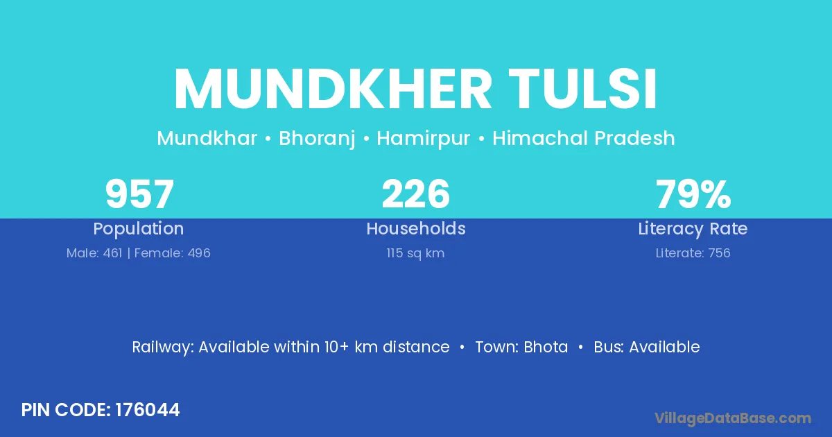 According to Census 2011 information, the village code of Mundkher Tulsi village is 176044.