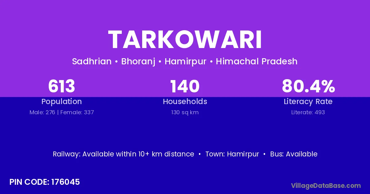 Tarkowari village has a total population of 613 people, of which 276 are males and 337 are females.