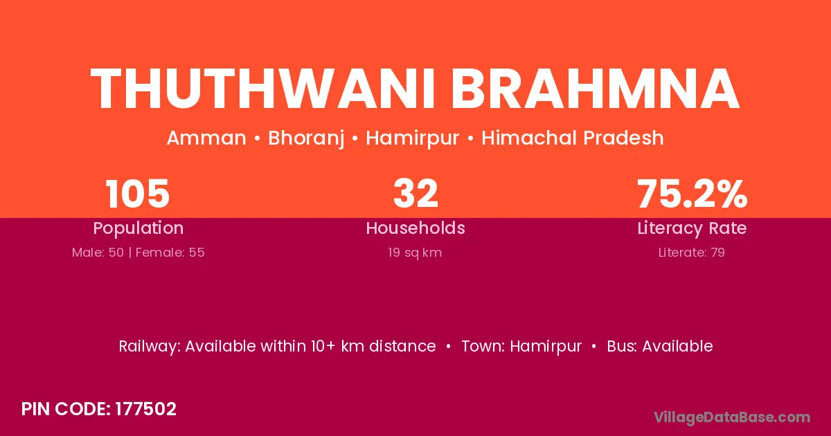 Hamirpur is the nearest town to Thuthwani Brahmna village for major economic activities