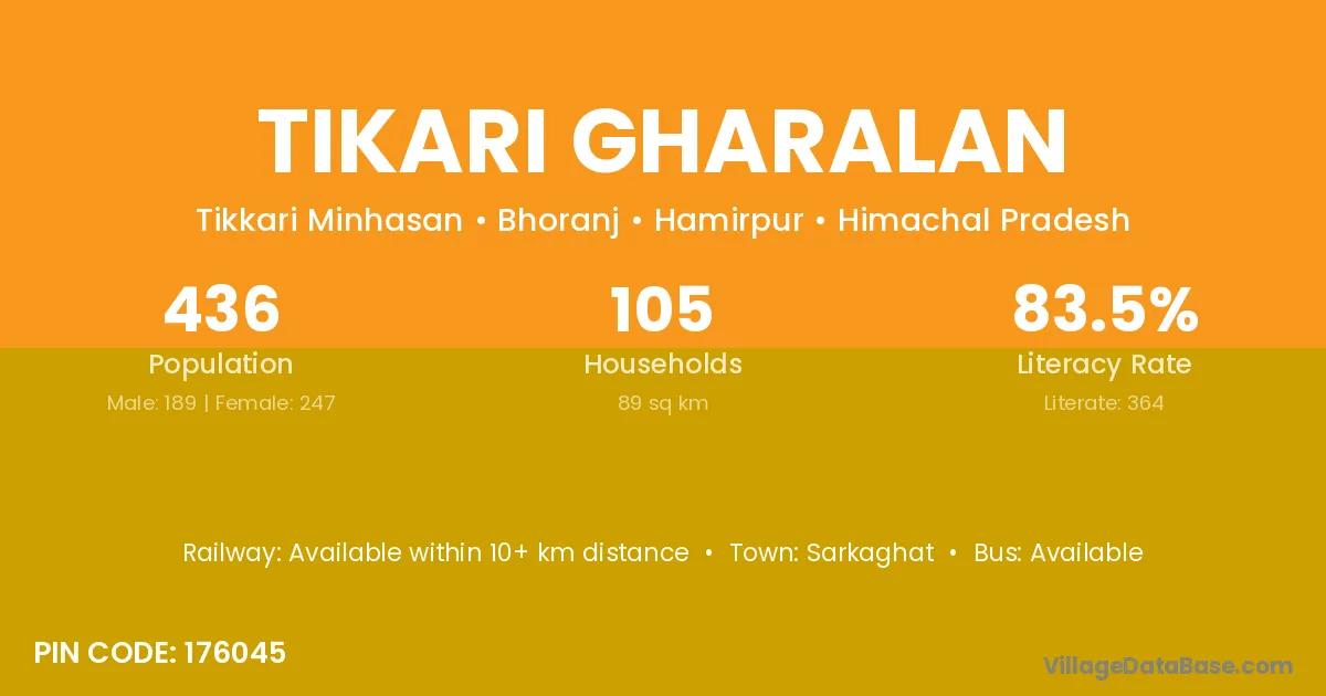 Tikari Gharalan village is located in the Bhoranj Tehsil of the Hamirpur district in Himachal Pradesh .