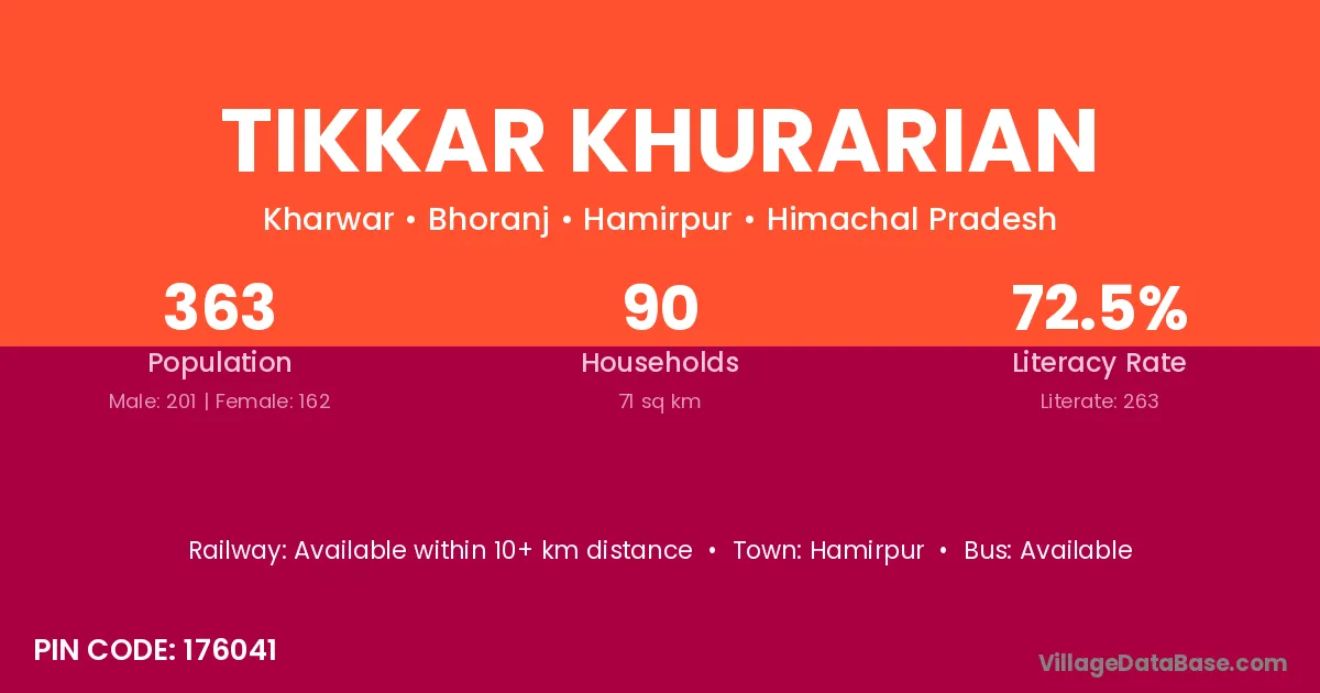 According to Census 2011 information, the village code of Tikkar Khurarian village is 176041.