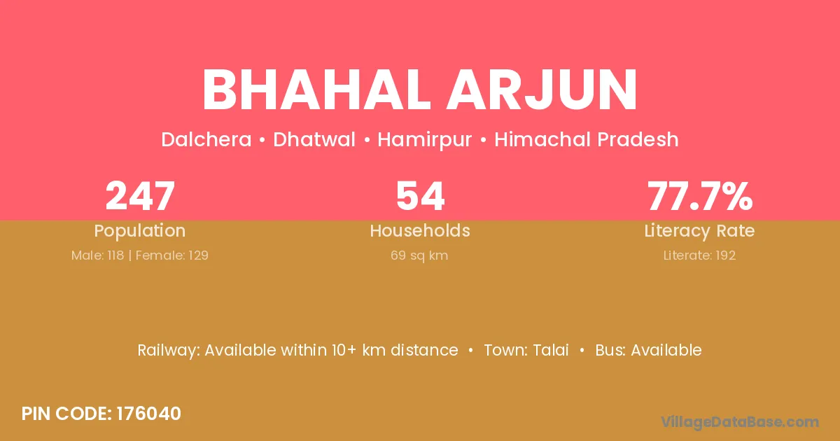 Bhahal Arjun village has a total population of 247 people, of which 118 are males and 129 are females.