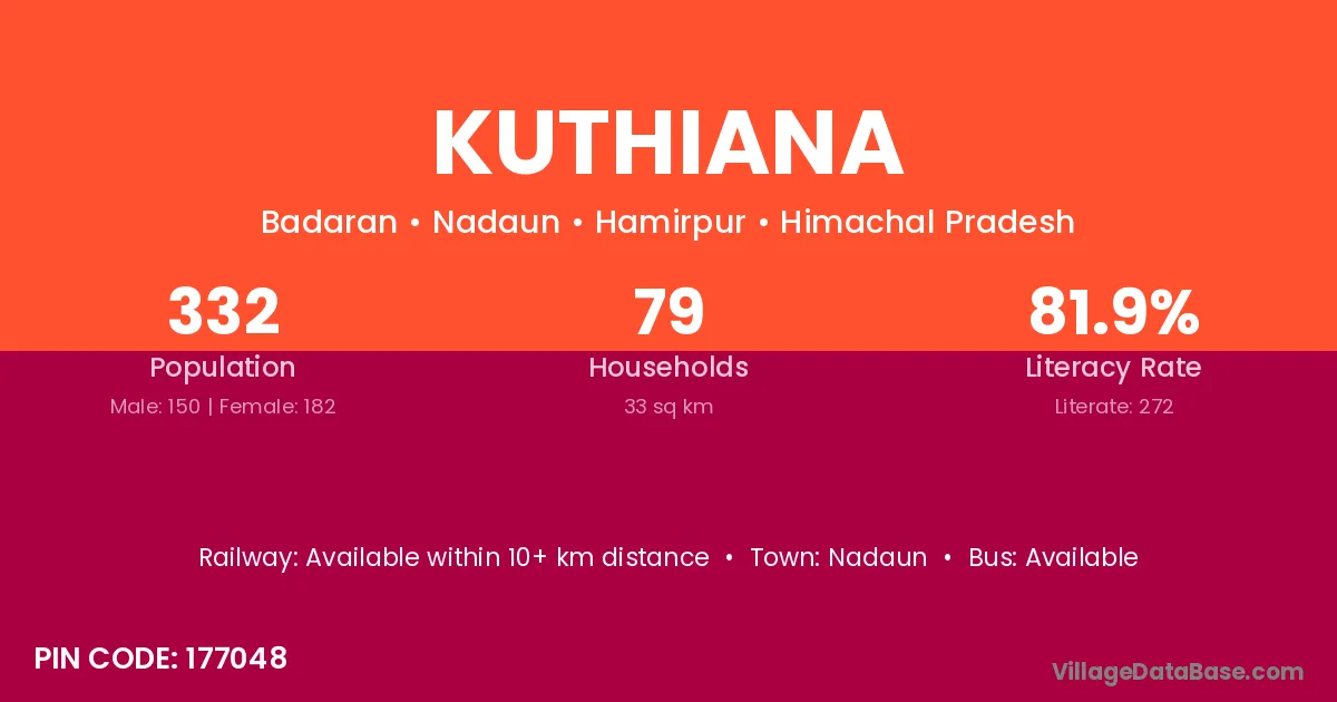 According to Census 2011 information, the village code of Kuthiana village is 176041.
