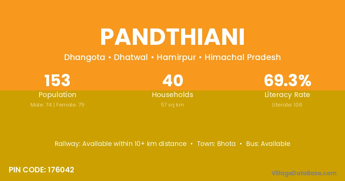 According to Census 2011 information, the village code of Pandthiani village is 176042.