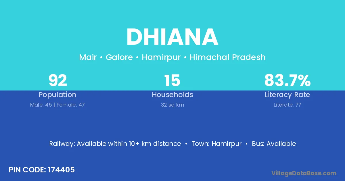 Hamirpur is the nearest town to Dhiana village for major economic activities