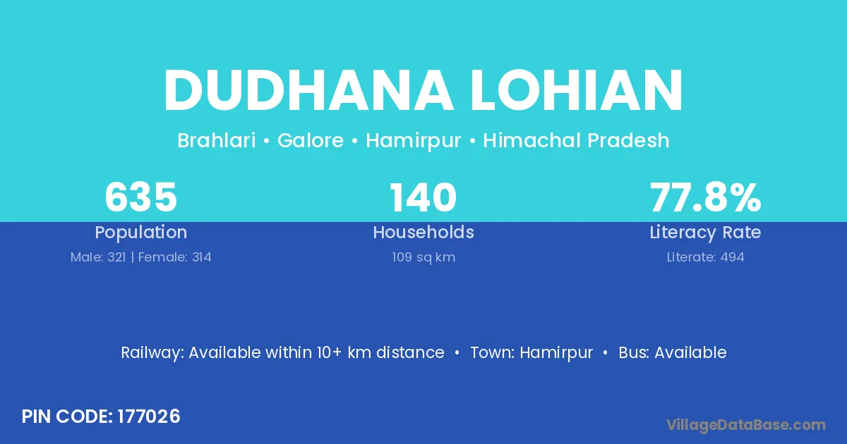 Hamirpur is the nearest town to Dudhana Lohian village for major economic activities