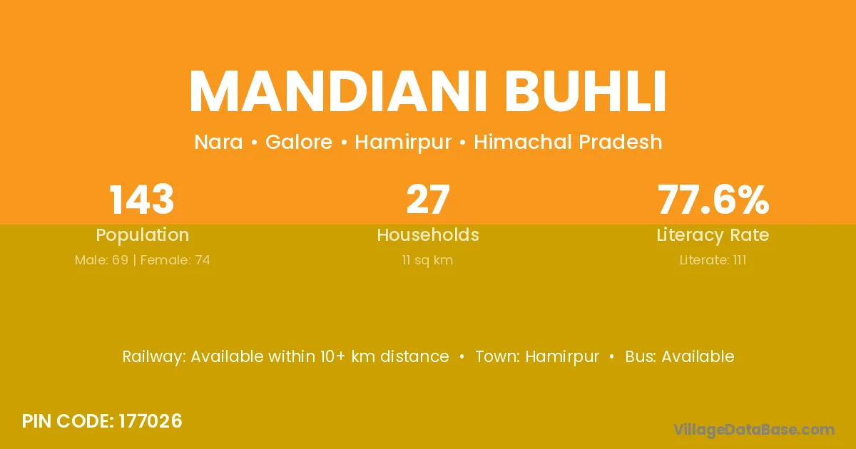 Hamirpur is the nearest town to Mandiani Buhli village for major economic activities