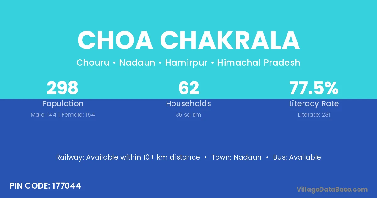 Nadaun is the nearest town to Choa Chakrala village for major economic activities