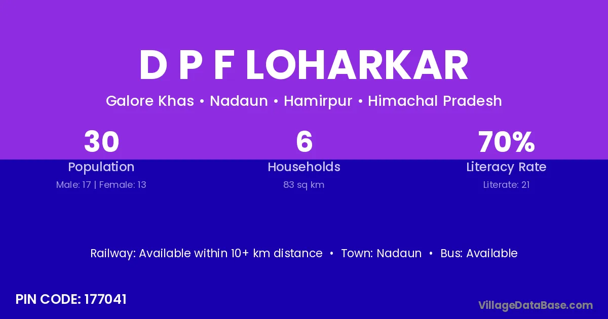 According to Census 2011 information, the village code of D P F Loharkar village is 177041.