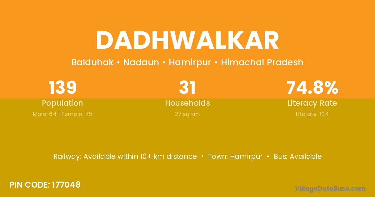 Hamirpur is the nearest town to Dadhwalkar village for major economic activities