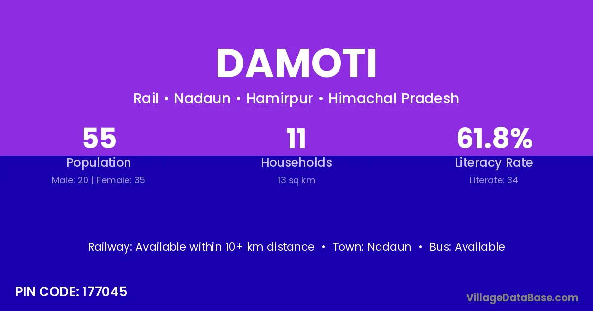 Nadaun is the nearest town to Damoti village for major economic activities