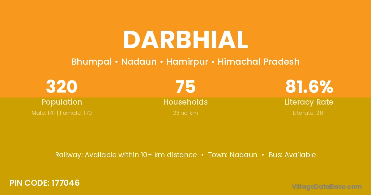 According to Census 2011 information, the village code of Darbhial village is 177046.
