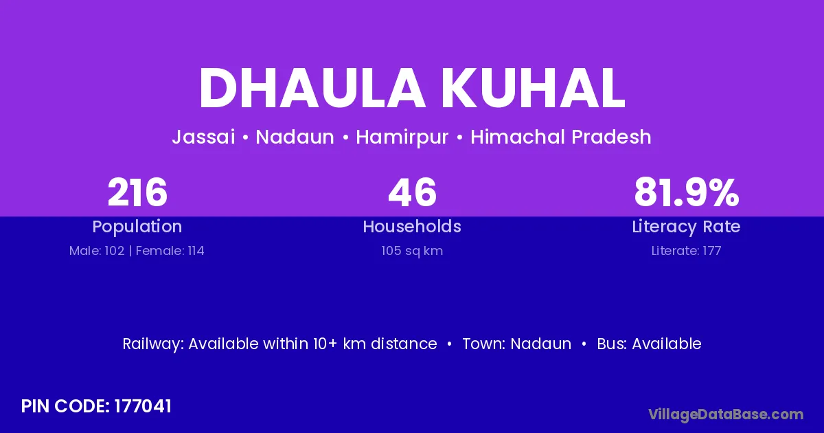 Dhaula Kuhal village has a total population of 216 people, of which 102 are males and 114 are females.