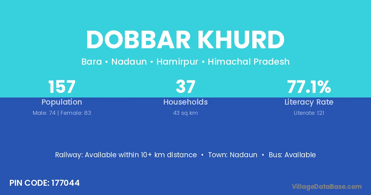 Dobbar Khurd village has a total population of 157 people, of which 74 are males and 83 are females.