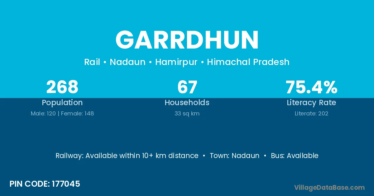 Garrdhun village has a total population of 268 people, of which 120 are males and 148 are females.
