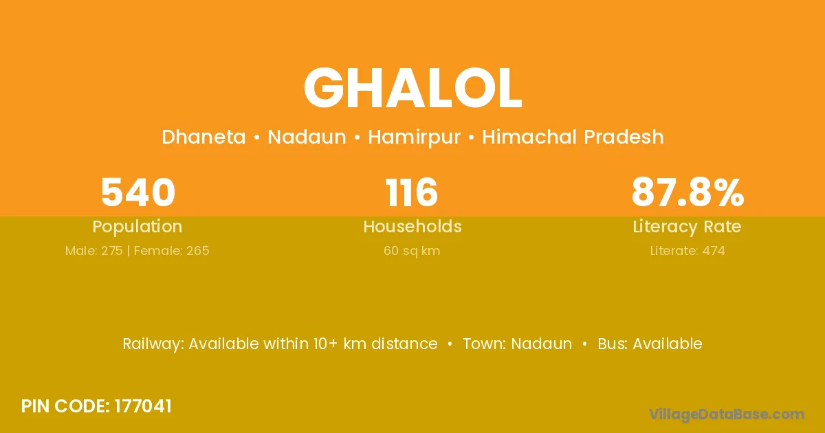 According to Census 2011 information, the village code of Ghalol village is 177041.