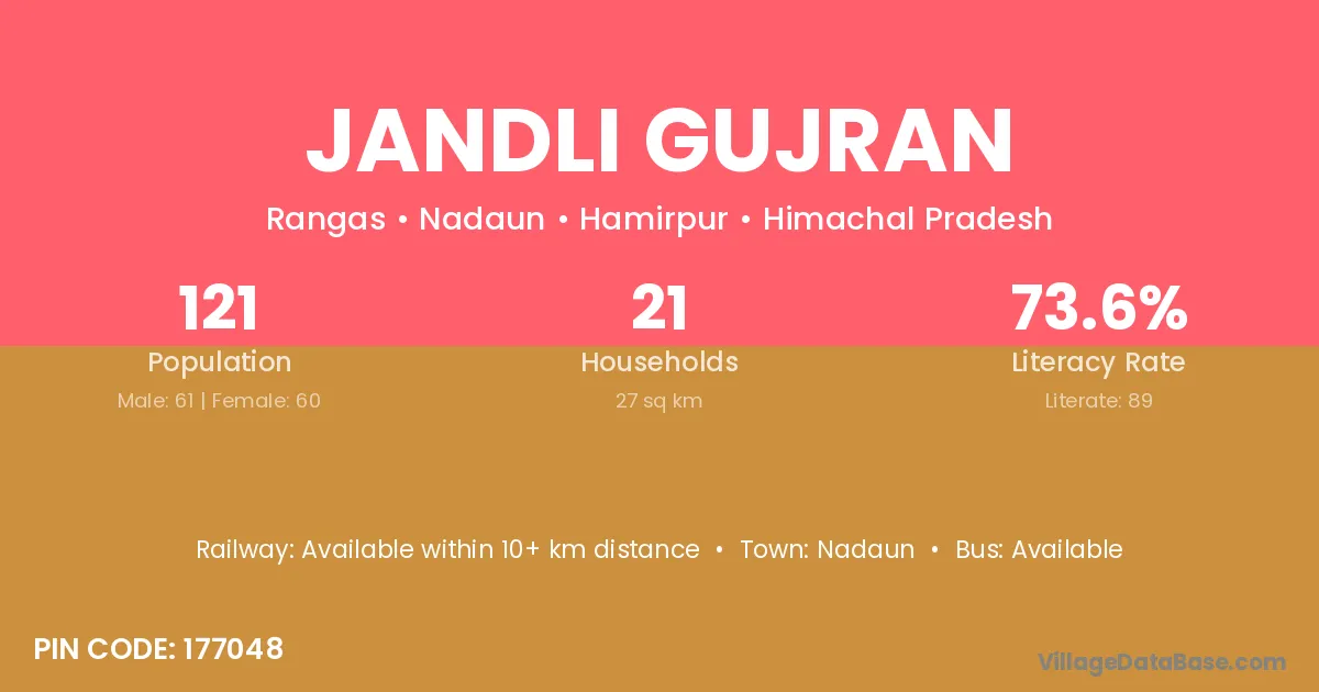 Jandli Gujran village has a total population of 121 people, of which 61 are males and 60 are females.