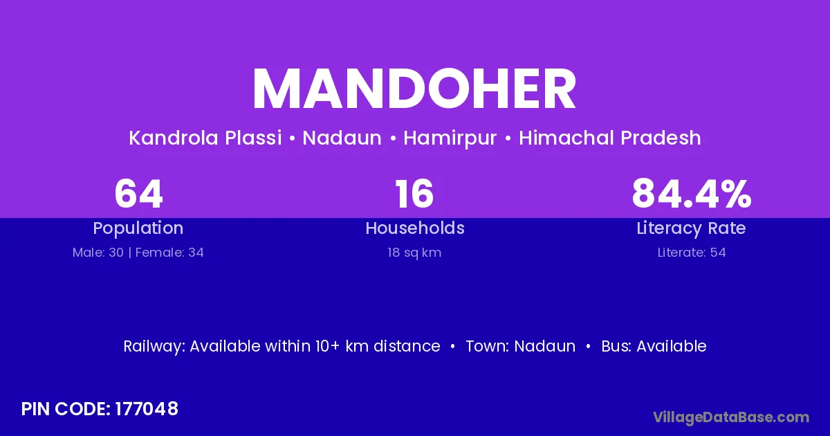 According to Census 2011 information, the village code of Mandoher village is 177048.