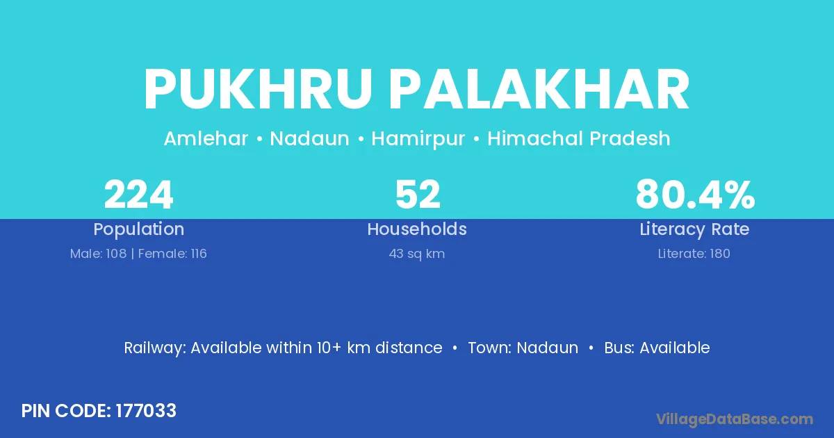 According to Census 2011 information, the village code of Pukhru Palakhar village is 177033.