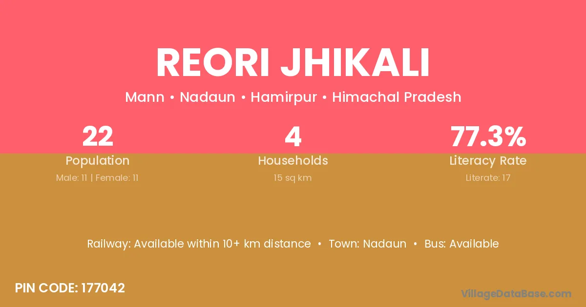 Reori Jhikali village has a total population of 22 people, of which 11 are males and 11 are females.