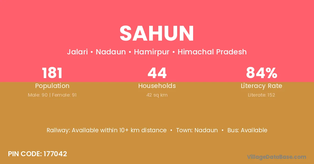 According to Census 2011 information, the village code of Sahun village is 177042.