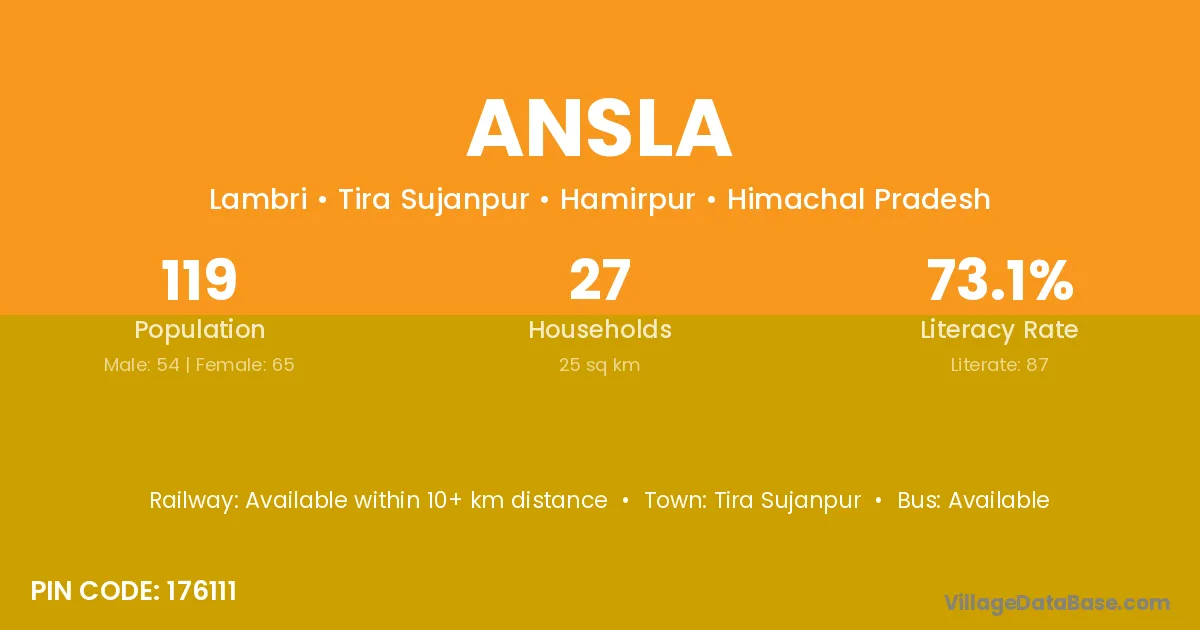 Tira Sujanpur is the nearest town to Ansla village for major economic activities
