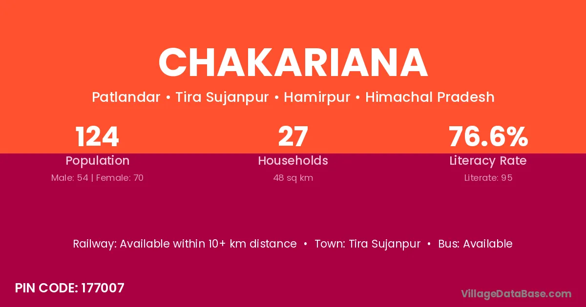 Tira Sujanpur is the nearest town to Chakariana village for major economic activities
