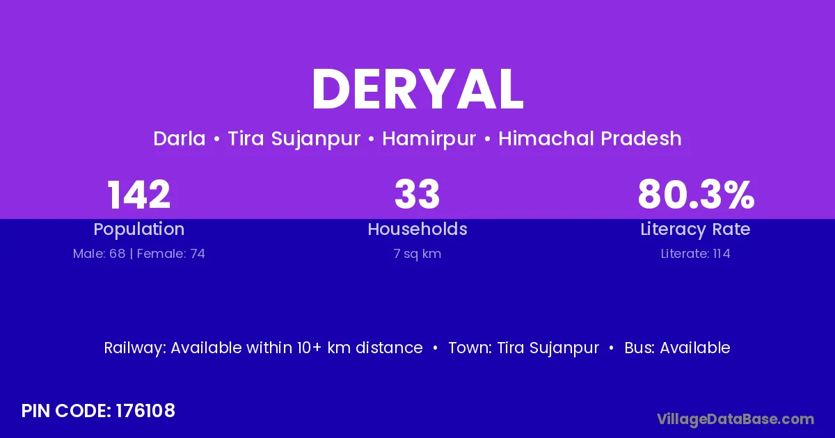 According to Census 2011 information, the village code of Deryal village is 176108.