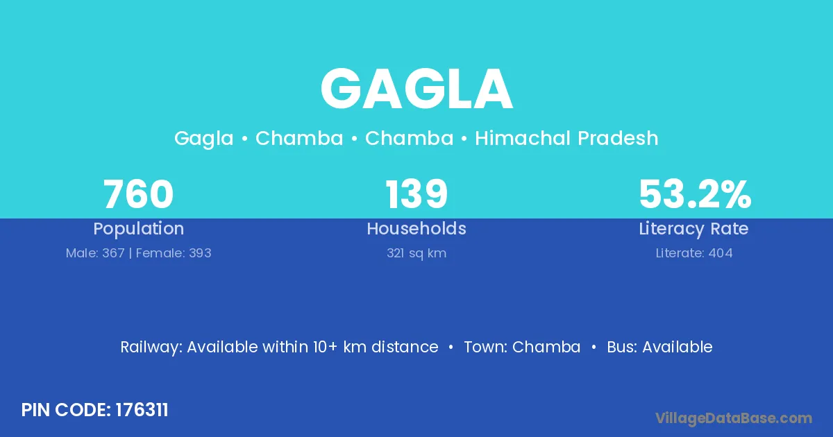 According to Census 2011 information, the village code of Gagla village is 176108.