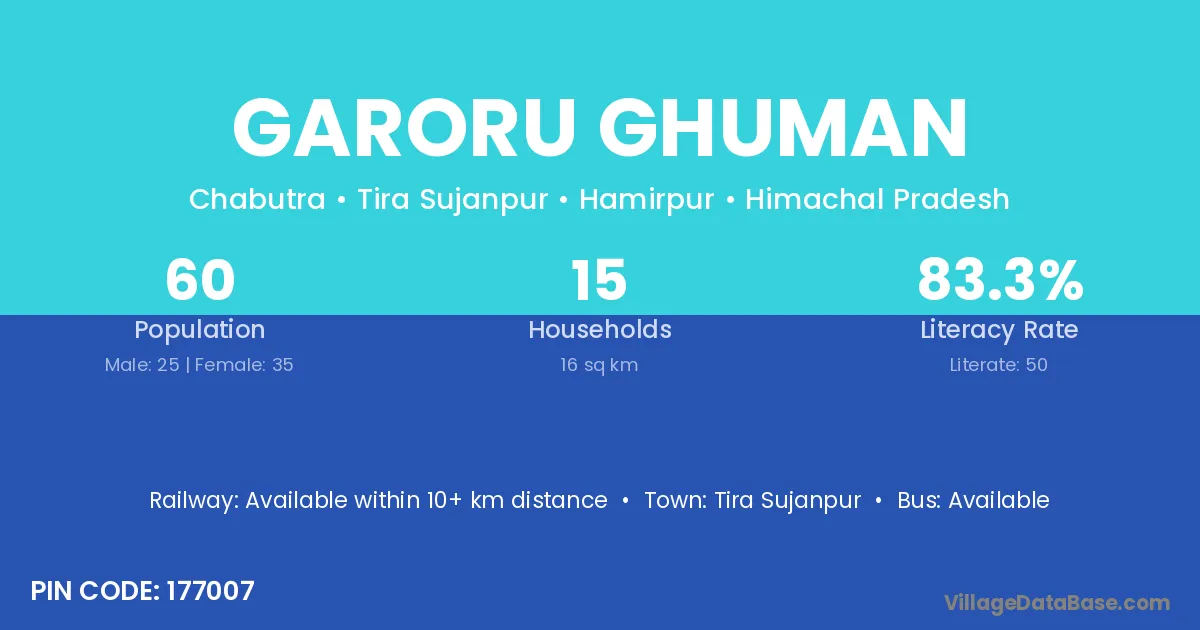 Tira Sujanpur is the nearest town to Garoru Ghuman village for major economic activities