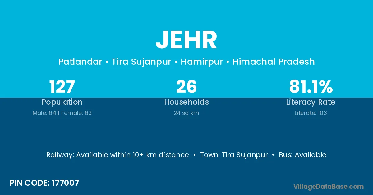 Tira Sujanpur is the nearest town to Jehr village for major economic activities