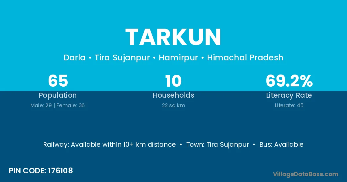 Tira Sujanpur is the nearest town to Tarkun village for major economic activities