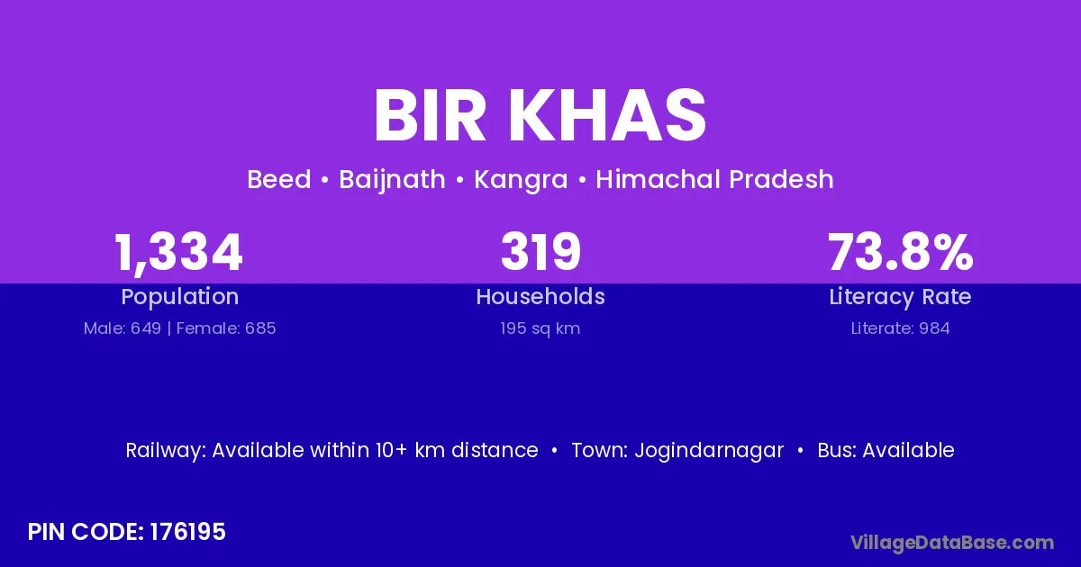 Jogindarnagar is the nearest town to Bir Khas village for major economic activities