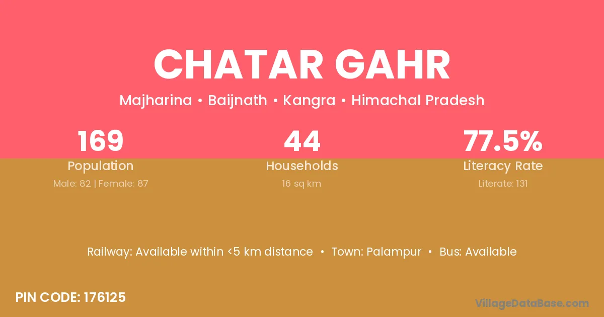 Palampur is the nearest town to Chatar Gahr village for major economic activities