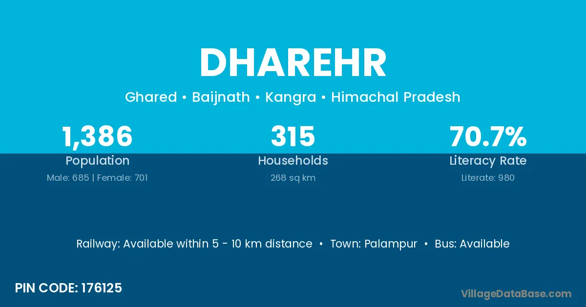 According to Census 2011 information, the village code of Dharehr village is 176125.