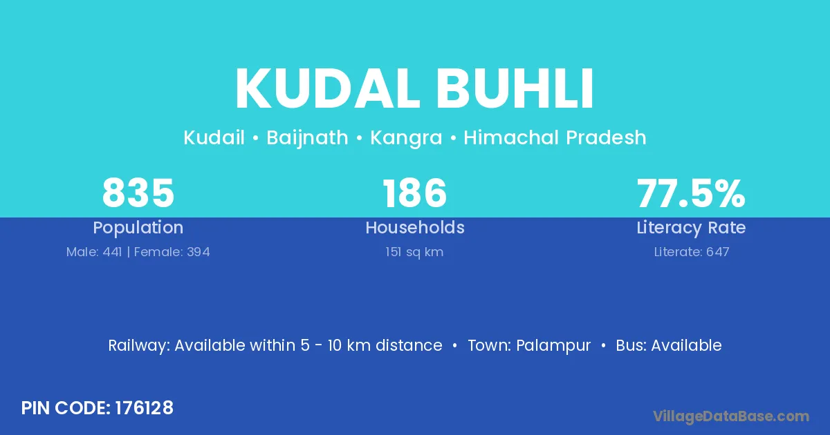 Palampur is the nearest town to Kudal Buhli village for major economic activities