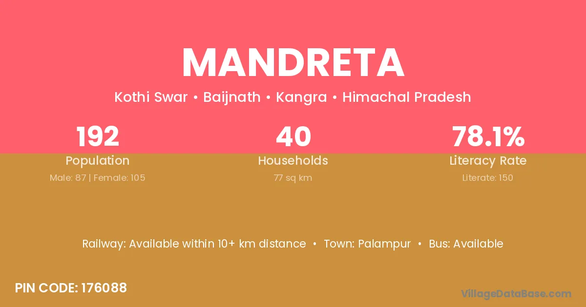 Palampur is the nearest town to Mandreta village for major economic activities