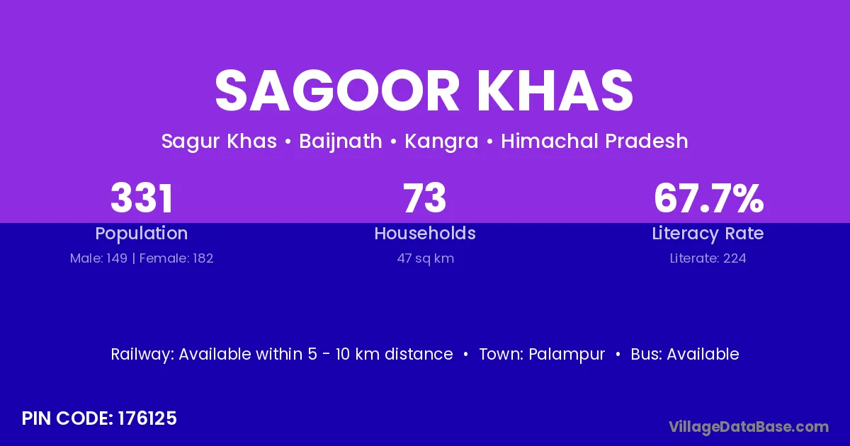 Palampur is the nearest town to Sagoor Khas village for major economic activities