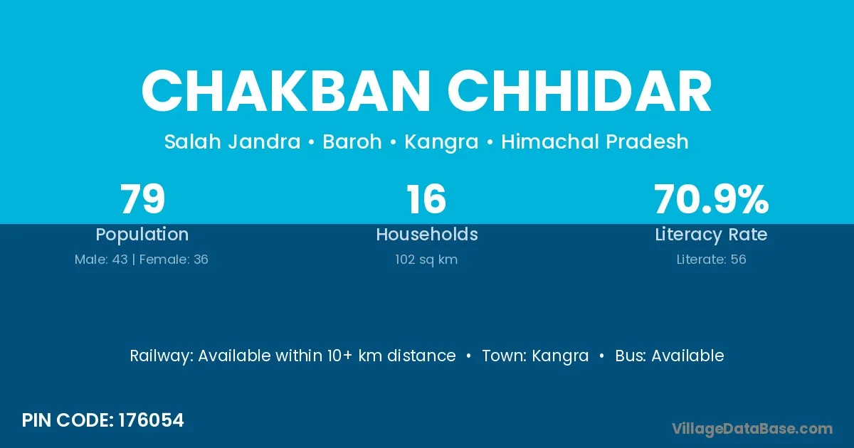 Kangra is the nearest town to Chakban Chhidar village for major economic activities