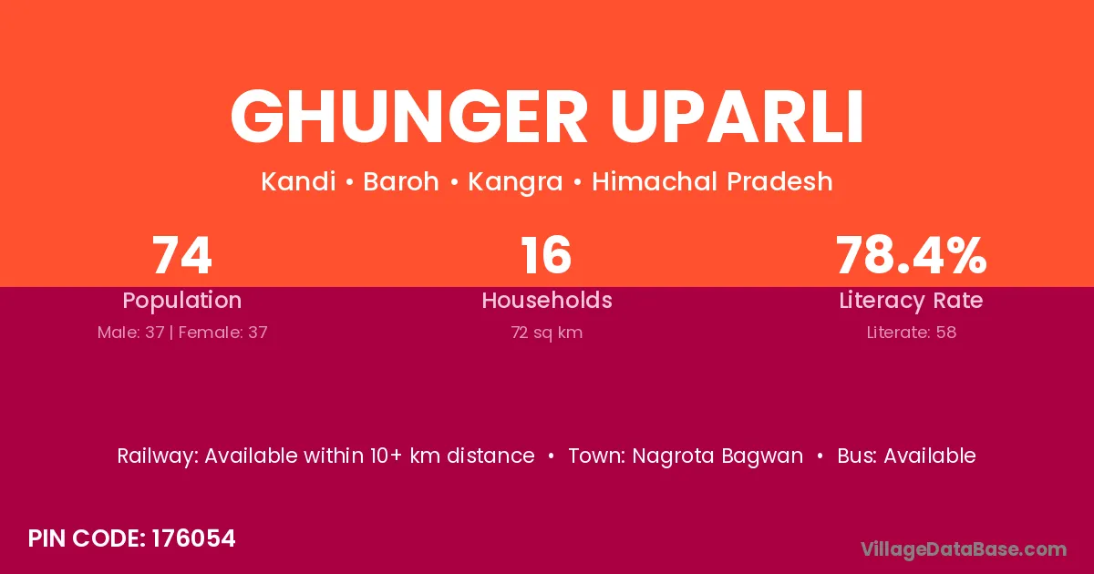 Ghunger Uparli village has a total population of 74 people, of which 37 are males and 37 are females.