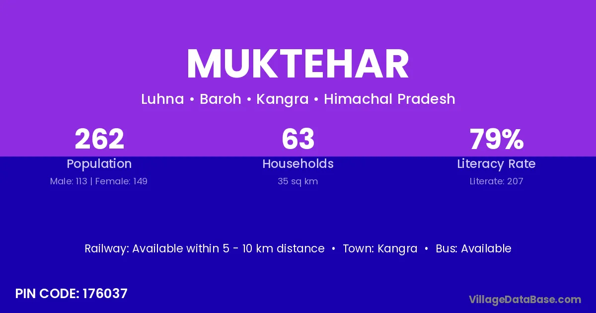 Kangra is the nearest town to Muktehar village for major economic activities
