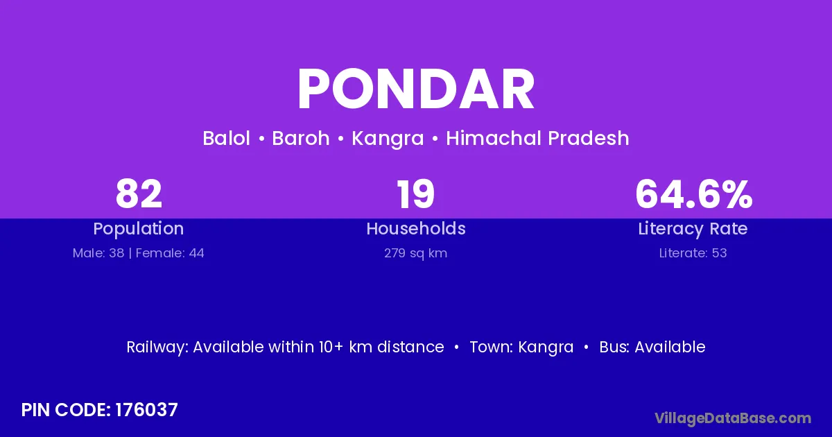 Kangra is the nearest town to Pondar village for major economic activities