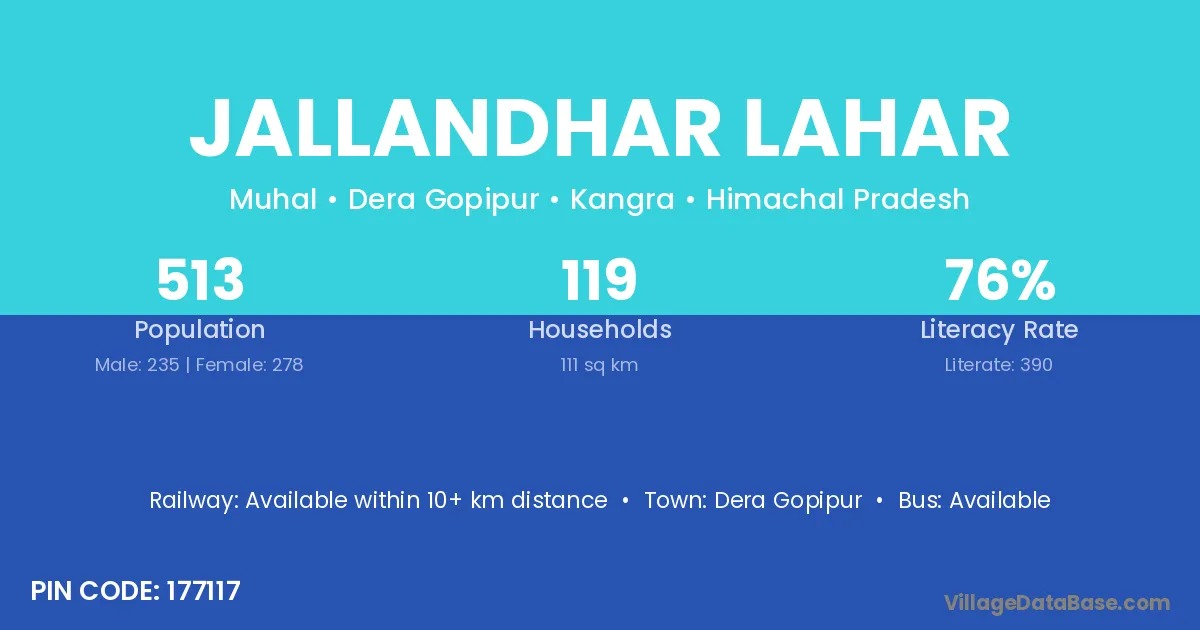 According to Census 2011 information, the village code of Jallandhar Lahar village is 177117.