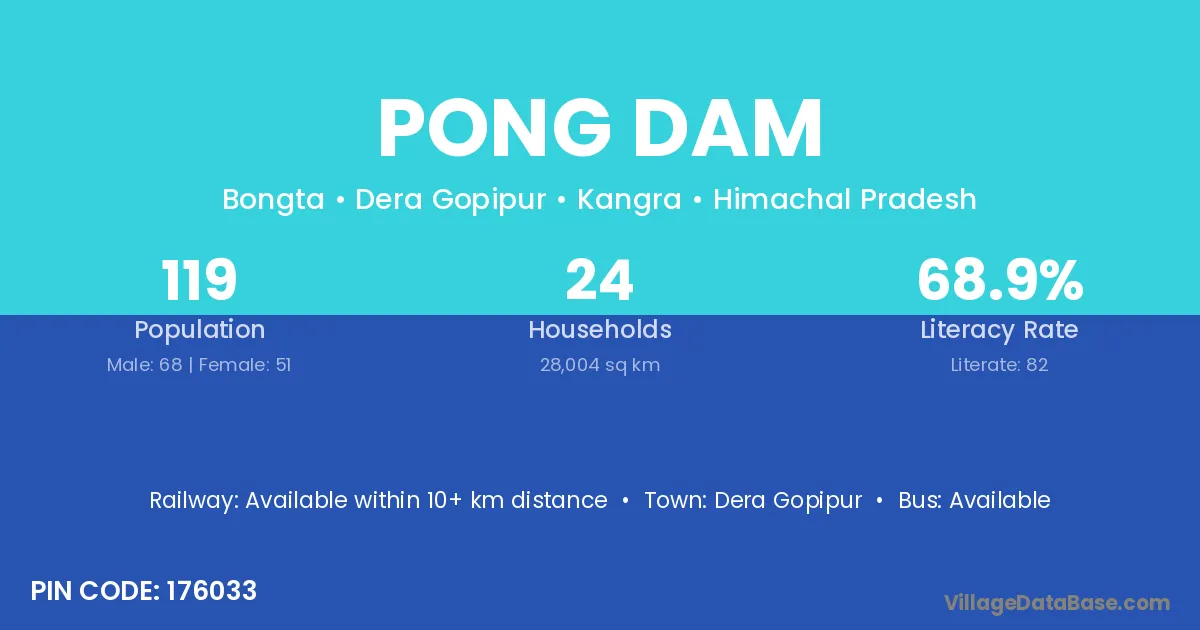 Dera Gopipur is the nearest town to Pong Dam village for major economic activities