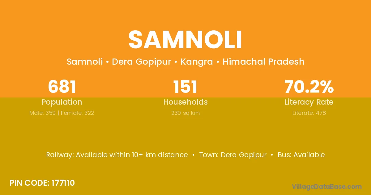 Samnoli village has a total population of 681 people, of which 359 are males and 322 are females.