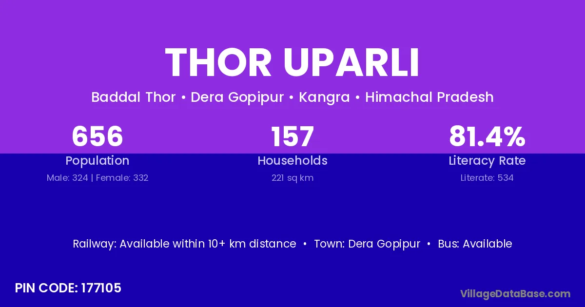 Thor Uparli village has a total population of 656 people, of which 324 are males and 332 are females.