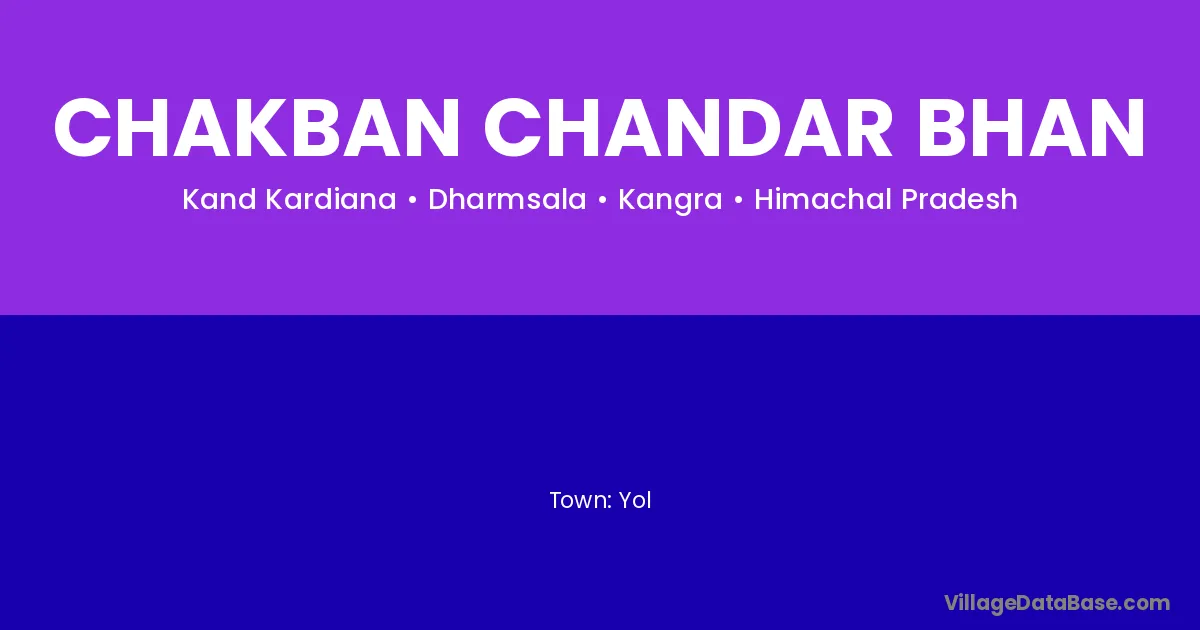 Chakban Chandar Bhan village is located in the Dharmsala Tehsil of the Kangra district in Himachal Pradesh .